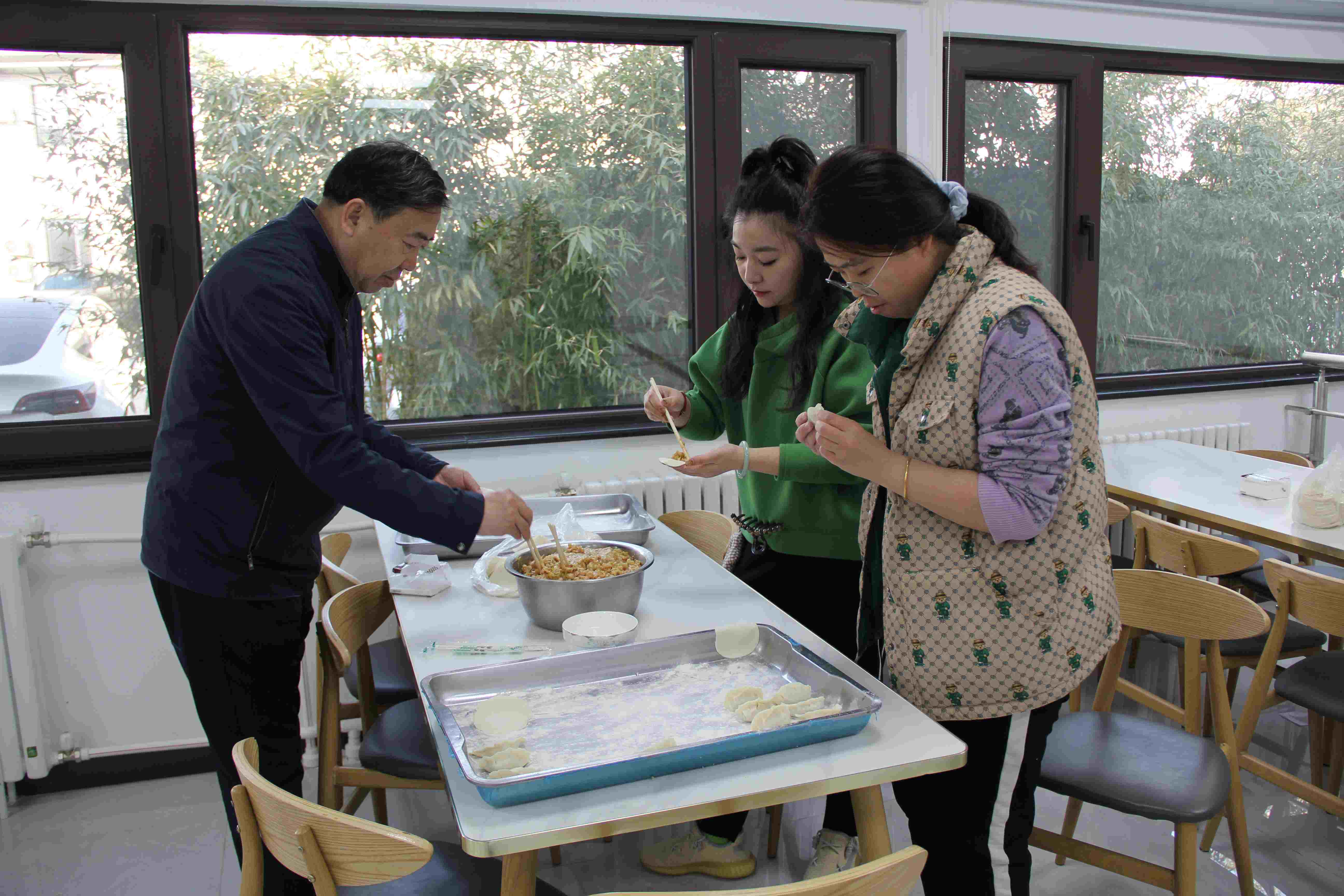 活动现场暖意融融、热闹非凡,提前布置好的场地整洁有序,面粉、饺子皮、馅料等食材一应俱全。大家分工协作,擀皮、包馅、捏形,各显身手、默契配合,现场弥漫着欢声笑语与浓郁的饺香。